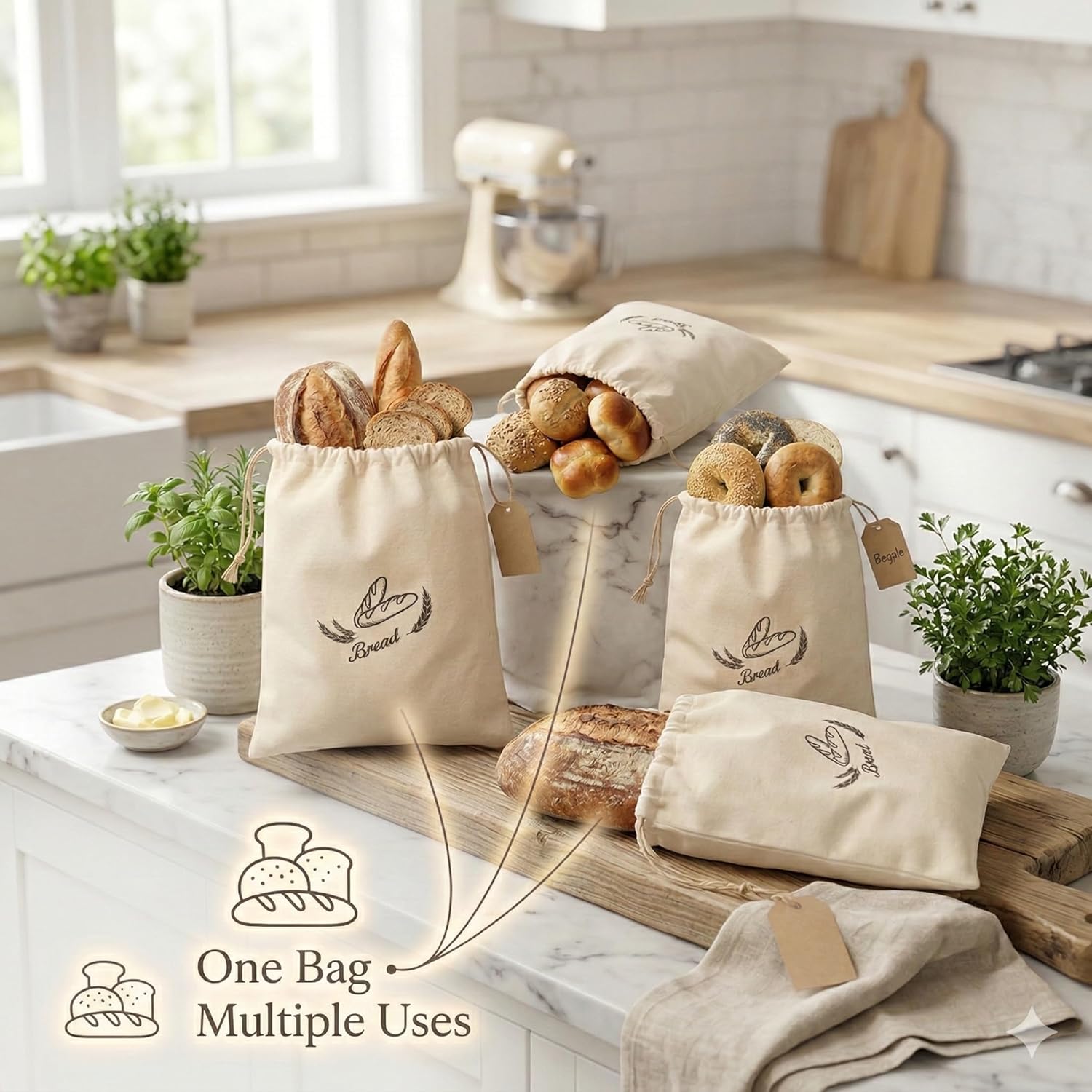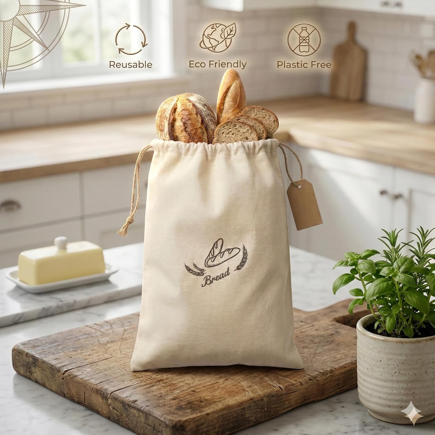 - Reusable alternative to plastic bread bags and disposable packaging. Machine washable cotton bread bags designed for daily baking routines, zero-waste kitchens, and eco-conscious bread storage.