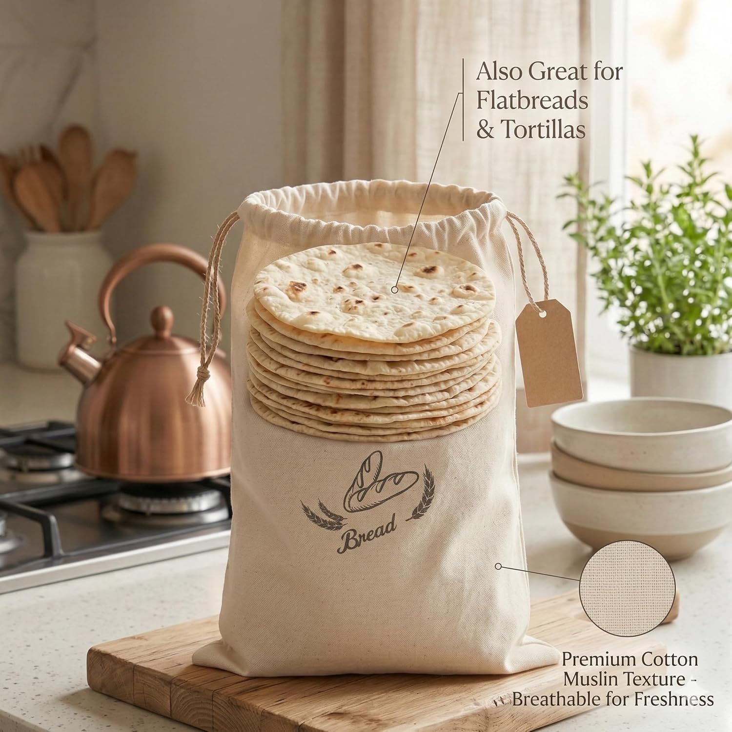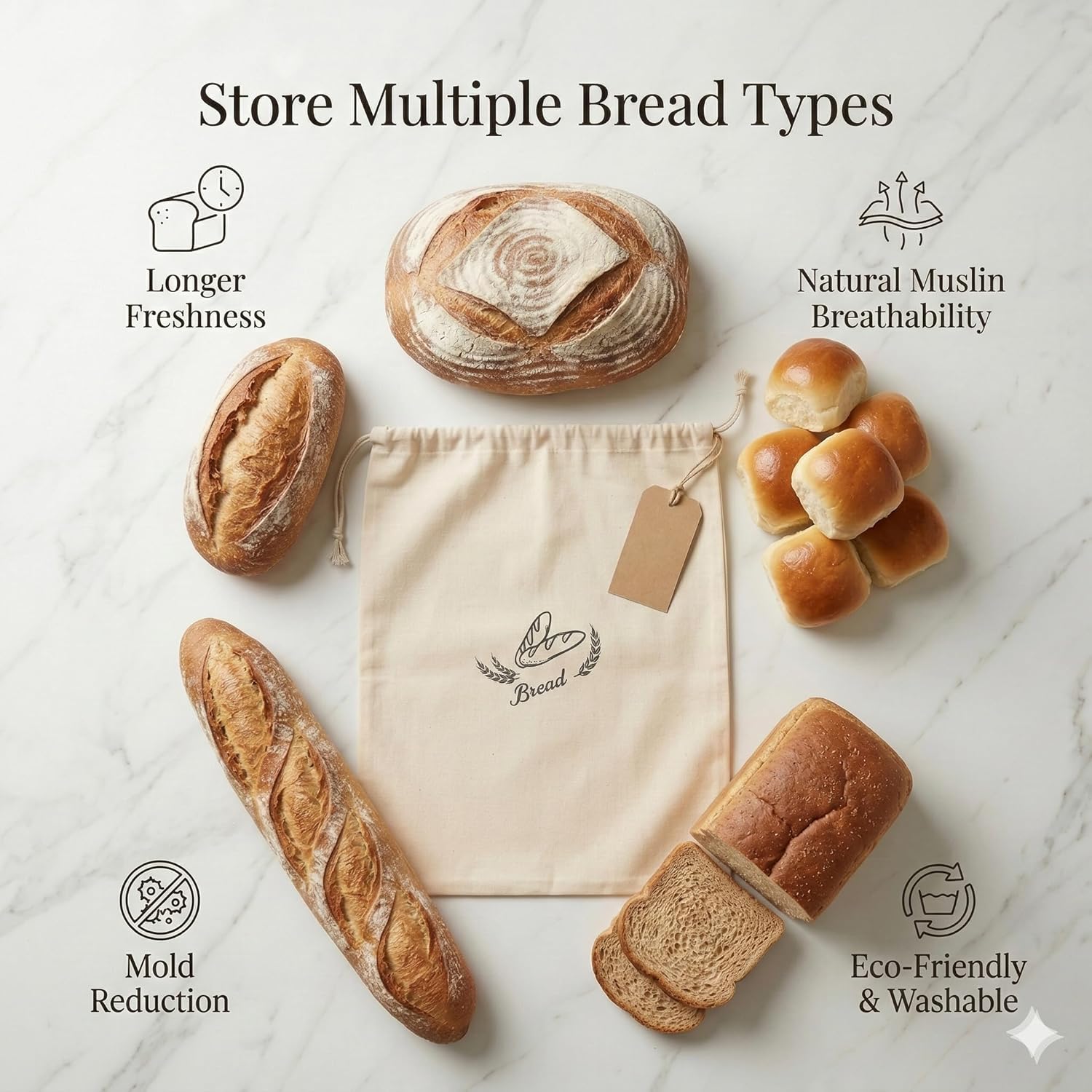 - Made from natural cotton muslin canvas fabric, these reusable bread storage bags allow proper air circulation to help prevent excess moisture while keeping crust texture and bread quality longer.