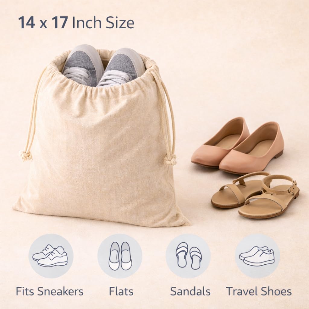 - Generous Size: Each bag measures 35.56 cm x 43.18 cm, providing ample space to accommodate sneakers, sandals, slippers, and other footwear for men and women